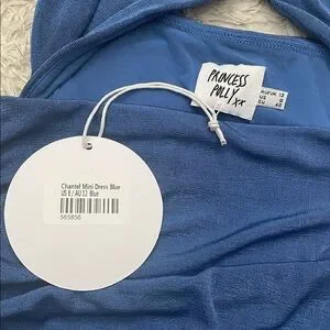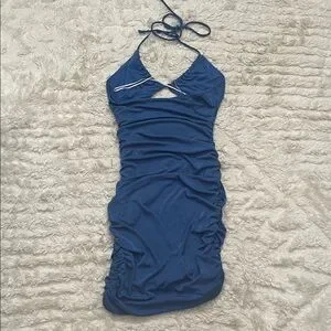 Princess Polly Chantel mini dress in blue. Ruched halter style bodycon dress with front cutout. Size US 8