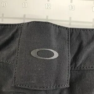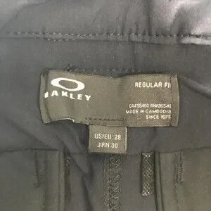 Details: Zip fly with front button closure, belt loops around waistband, two front slant hand pockets, and two back welt pockets for on-course or everyday storage. Clean minimalist design with subtle Oakley branding and a tapered leg silhouette suitable for golf, travel, or casual wear.