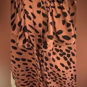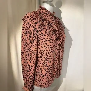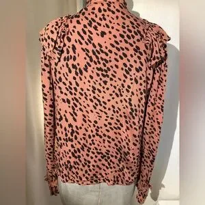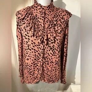 ZARA Animal Print Ruffle Blouse Blush Long Sleeve Button-Up Sz Small