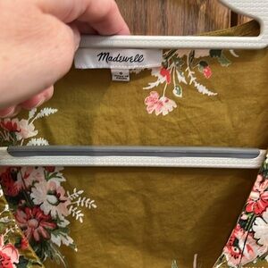 Beautiful Madewell floral blouse, tiered short sleeves, peplum hem, crossover chest detail with hidden snap, side zip, size 0, EUC
