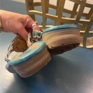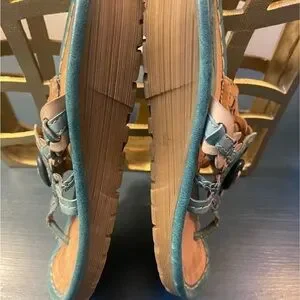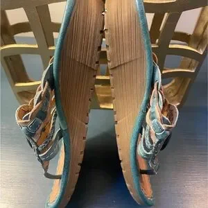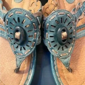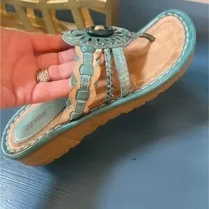 Earth Wander Leather Teal Thong Sandals Women’s 8B Cushioned Slight Wedge