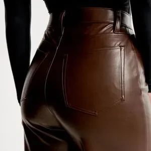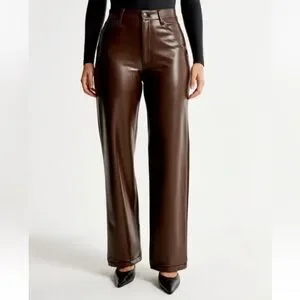 Abercrombie & Fitch The 90s Straight Ultra High Rise Curve Love Leather Pants DD