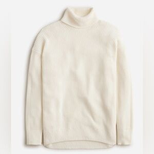 J. Crew Relaxed Cotton-Cashmere Blend Ribbed Turtleneck Sweater | Cream | XXS
