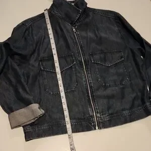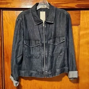Chic shacket with flap pockets and zipper. Perfect for layering.