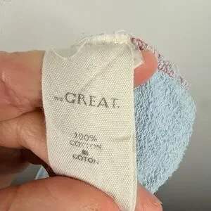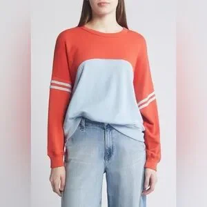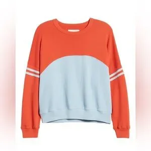 THE GREAT Cross Country Colorblock Cotton Sweatshirt Tomato Red Blue Medium