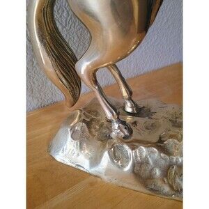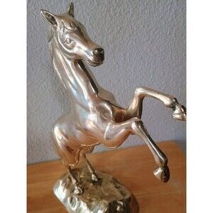 Mid- Century Vintage 15'' Tall Solid Brass Rearing Horse Sculpture Statue