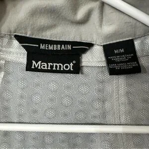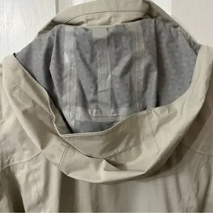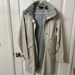 Marmot women's MemBrain® long rain jacket in a beige/cream color.