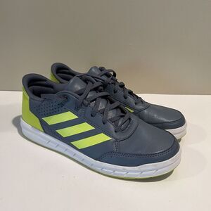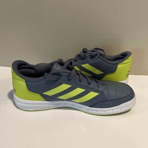 These Adidas sport sneakers are perfect for active boys! The gray and yellow striped design adds a touch of style to any sports outfit. With a size 6 fit, these sneakers are made for comfort and movement during any athletic activity. The Adidas brand is known for quality and durability, making these sneakers a great choice for parents and kids alike. Whether for the soccer field or the basketball court, these sneakers are sure to provide the support and comfort needed for any young athlete.
