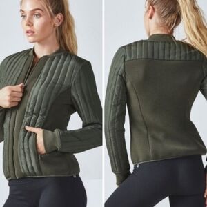 Fabletics Pisa Puffer Quilted Jacket Olive Green Women's Size Large