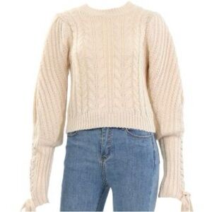 525 America Women's Cream Cable Knit Puff Sleeve Sweater Size M