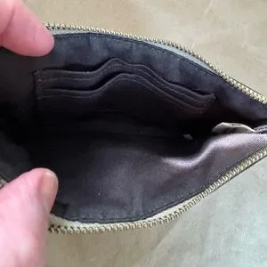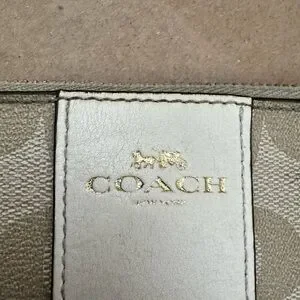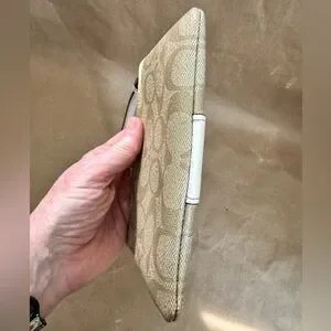 Coach Corner Zip Wristlet in Tan Signature Canvas & Cream Trim Wristlet 6” by 4”
