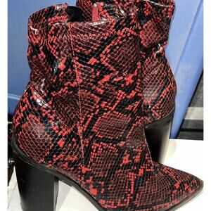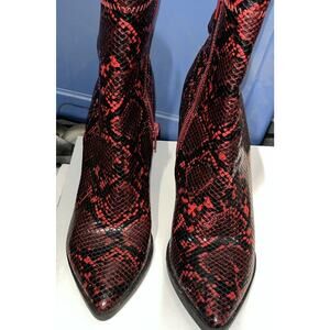 Womens Size 7 Kady Red Ankle Snake Skin Faux Leather Boots Pointy Toe Fashonnova