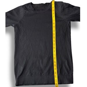 Lululemon Rest Less Pullover Women Size 8 Black Ribbed Seamless Thumbholes Top