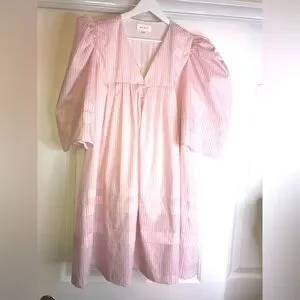 Anthropoogie MABEL Romantic and Feminine Pink Puff Sleeve Babydoll Dress Size M