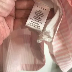 This darling pink-striped dress from California brand MABLE is full of romantic, feminine charm—with a nod to 1950s housewife chic and a wink at Elle Woods' Harvard era. Featuring dramatic puff sleeves, covered buttons, and tiered seersucker stripes, it falls into an airy A-line silhouette that's equally flattering and bump-friendly. Fully lined. Size Medium. Measurements available upon request.