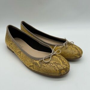 Helene Rouge Made in Spain Snake Embossed Leather Ballet Flats Yellow EU 38 NWT