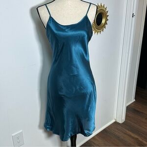 Ssshhh Intimates Teal Blue Satin Slip Dress/Womens Size Small (see measurements)