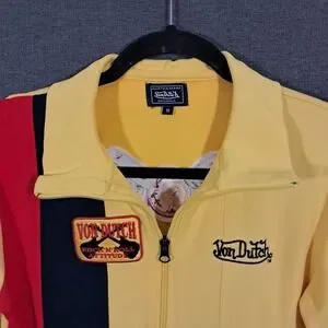Vintage 2000s Von Dutch Full Zip Track Jacket Yellow Retro Y2K Biker Baddie