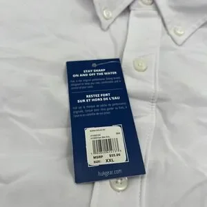 HUK Kona Fishing Hook Performance Shirt Men 2XL White SS Button Up NEW *FLAW