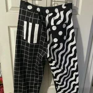 LAU Black White Patterned High Waisted Pants From Italy Designer-Made NWT
