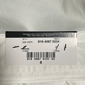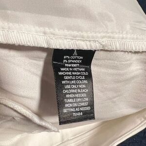 Crisp white shorts perfect for summer. Made of 97% cotton and 3% spandex for comfort and stretch. Features a tailored fit with a zip fly and button closure. Ideal for casual outings, beach days, or pairing with a blouse for a smart-casual look. Machine washable on gentle cycle. New with tags, ready to elevate your warm-weather wardrobe.