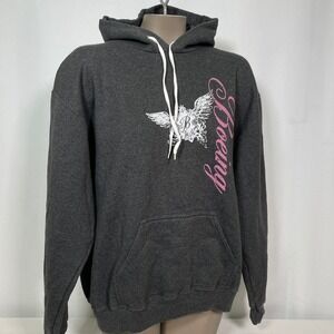 Boeing Charcoal Gray Script Winged Hoodie Sweatshirt Women's LARGE