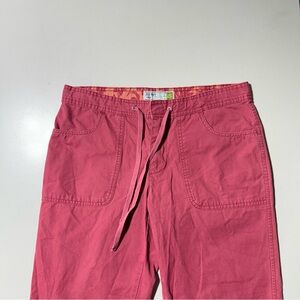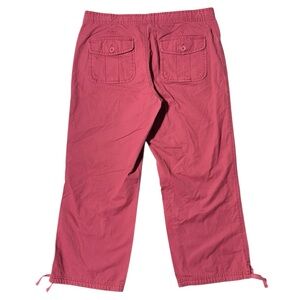 Old Navy Capri Pants Coral Twill Low Waist Vintage Y2K Crop. The pink/coral color and cropped length give them a versatile, coastal, or boho vibe, suitable for various casual occasions.