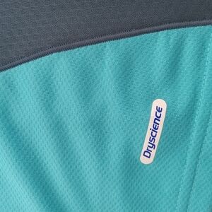 Mizuno athletic shirt in blue and teal. Perfect for workouts.