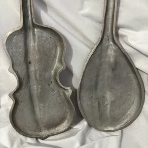 Enhance your home gallery with this stunning set of Royal Cast Aluminum musical instrument wall hangings. This pair includes a detailed violin and mandolin, featuring a classic mid-century aesthetic. While they have a rich, wood-like brown finish that adds warmth to any room, they are crafted from durable cast aluminum for a high-quality, lightweight feel.