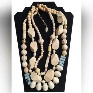 Plunder Marielle 3-Strand Wood Bead Necklace - NWOT