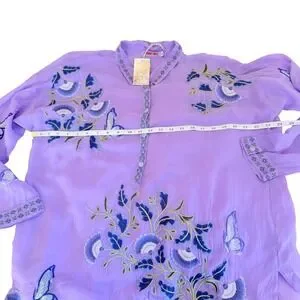 Johnny Was Slim Audrey Tunic Womens Boho M Lavender Embroidered Butterfly Top
