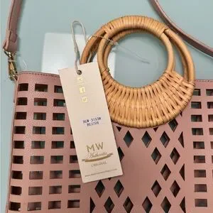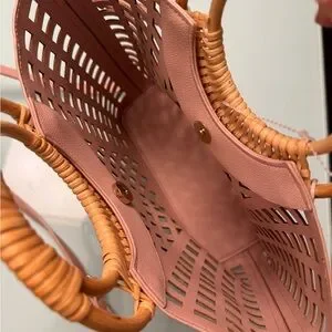 NWT Madison West Blush Laser-Cut Tote Bag with Rattan Handles