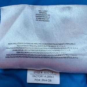 Material: Shell 100% Polyester, Lining 100% Nylon