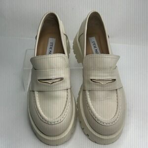 Steve Madden Lawrence Bone Leather Chunky Lug Sole Platform Loafers 8M LAWR01S1