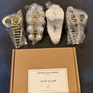 Elevate your hairstyle with the Hair Claw Set. Featuring 4 piece set, elegant gold and white tones, these accessories add a touch of sophistication to any look. Perfect for any occasion.