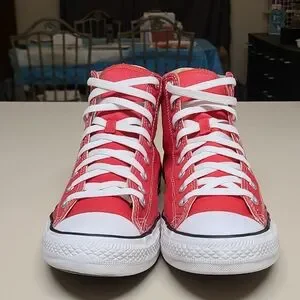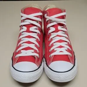 Converse CTAS hi top casual sneakers. Red and White color way. Size 10b with light surface wear but otherwise in great used condition.