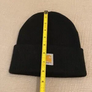 Stylish knit hat by Carhartt. Features fold-over cuff and logo patch.
