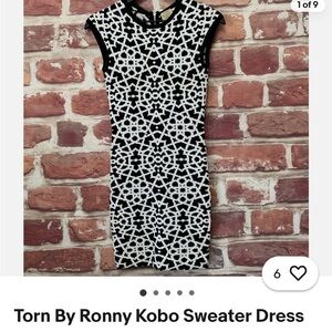 Torn by Ronny Kobo (Small) Black & White Patterned Body-con Sweater Mini Dress