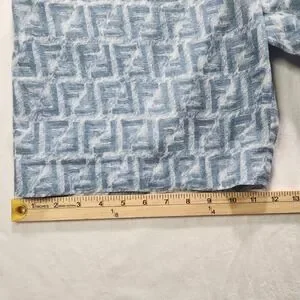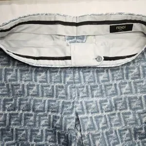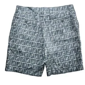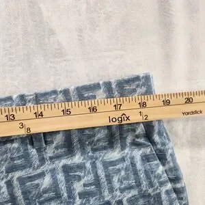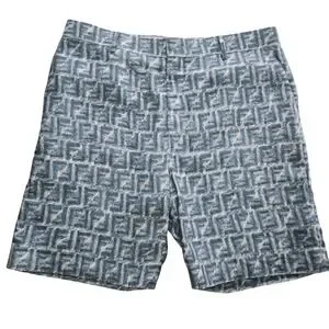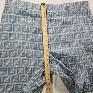 Fendi FF Logo Linen Shorts Mens Bermuda Blue White IT 52 FB0821 AR62