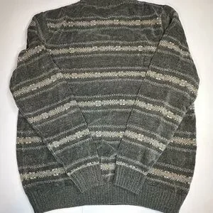 The Vintage Dockers Sweater is a classic piece from the 90s with a retro feel. Made from a blend of rayon, cotton, and acrylic in a chunky-knit fabric, this gray striped pullover features a crew neckline and is designed for men in size Large. Perfect for winter and fall seasons, this heavyweight sweater is ideal for walking and all seasons wear. With its timeless style and vintage charm, this Dockers sweater is a must-have for those looking to add a touch of nostalgia to their wardrobe.