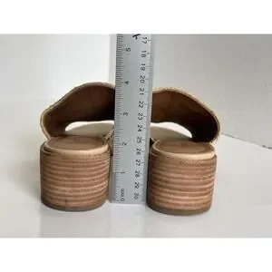 Frye Cindy Mules Women's Size 7.5M Cream Woven Leather Block Heel Slide Sandals