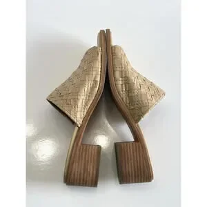 Frye Cindy Mules Women's Size US 7.5M Cream Woven Leather Block Heel Slide Sandals.