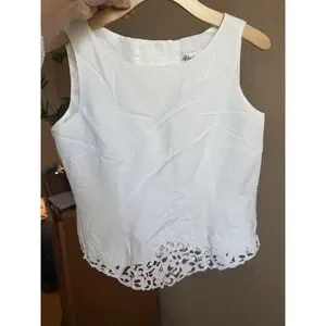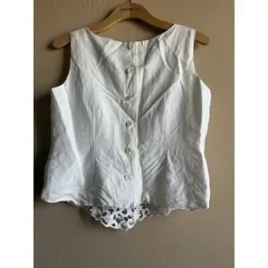 Vintage Scallop White Back Button‎ Up Top Crochet Detail