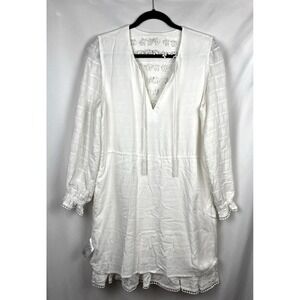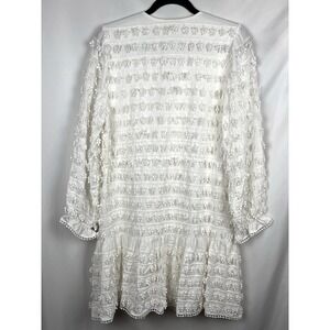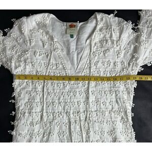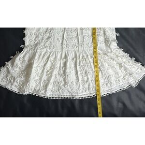Farm Rio White 3D Flower Embroidered Tassel Mini Dress S Boho Resort Artisanal