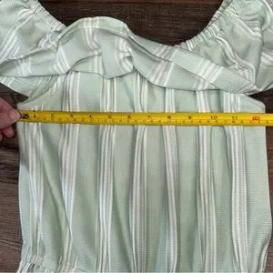 Girls Size 10 Mint Green Stripe Off Shoulder Ruffle Jumpsuit Wide Leg Romper