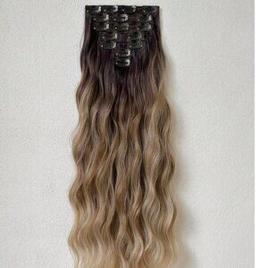 Upgrade your hairstyle instantly with these long wavy ombre clip-in hair extensions, crafted from premium heat-resistant synthetic fibers for a soft, silky, and natural finish. Featuring a dark brown to blonde balayage blend, these natural-looking clip-in extensions add instant volume, length, and dimension to your look. The easy-to-use clips provide a secure and comfortable fit, making them perfect for daily wear, weddings, parties, cosplay, or special occasions. Style with waves, curls, or straighten for versatile looks without damaging your natural hair.