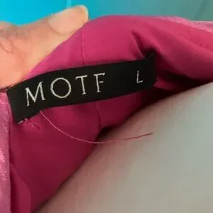 Chic pinkish lavenderish dress with ruffle accents. Features elegant rosette detail. Ideal for stylish outings.