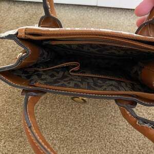 Condition: Pre-owned with minor visible wear. Shows some light scuffs on the tan leather trim as seen in photos. Overall a very functional and chic everyday bag.