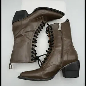 Chloe Rylee Patent Leather Heel Boots Brown Size 41 EU, 11 US