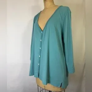 J. Jill Turquoise Button-Down Pima Cotton Shirt Soft Aesthetic Minimalist Prarie